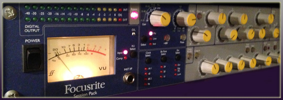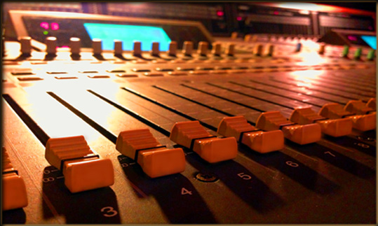 Das Herzstück ist das große digitale Mischpult. Es besteht aus 2x Yamaha O2R Mixingdesks, verschiedenen Effekten, EQ`s, Vorstufen etc. Wir arbeiten auf Mac und Logic 10 mit allen nötigen Plug-Ins und Software.
