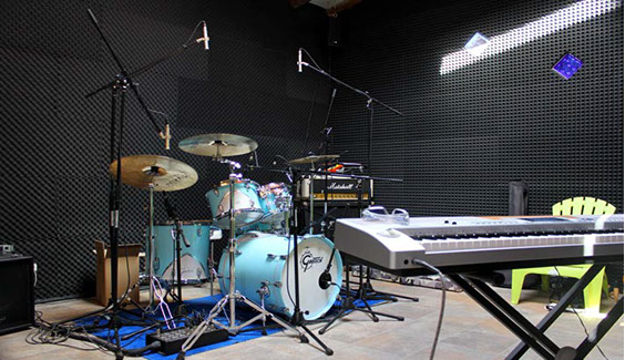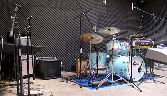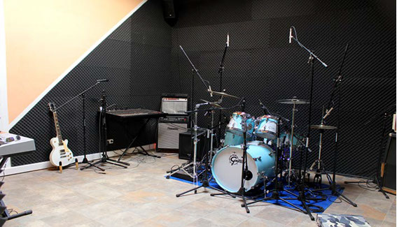 Recording 1 (40qm) ist ein vollkommen ausgestatteter Übungs- und Aufnahmeraum. 2 Gitarrenverstärker, ein bereits mikrofoniertes und best eingestelltes Schlagzeug, ein Bassverstärker, Gesangsanlage, Keyboard und ein Live-Mixer, können für Song-Arrangements, Pre- und Live-Recordings direkt verwendet werden.