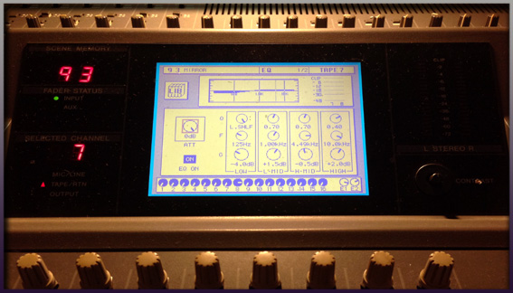 Das Herzstück ist das große digitale Mischpult. Es besteht aus 2x Yamaha O2R Mixingdesks, verschiedenen Effekten, EQ`s, Vorstufen etc. Wir arbeiten auf Mac und Logic 10 mit allen nötigen Plug-Ins und Software.